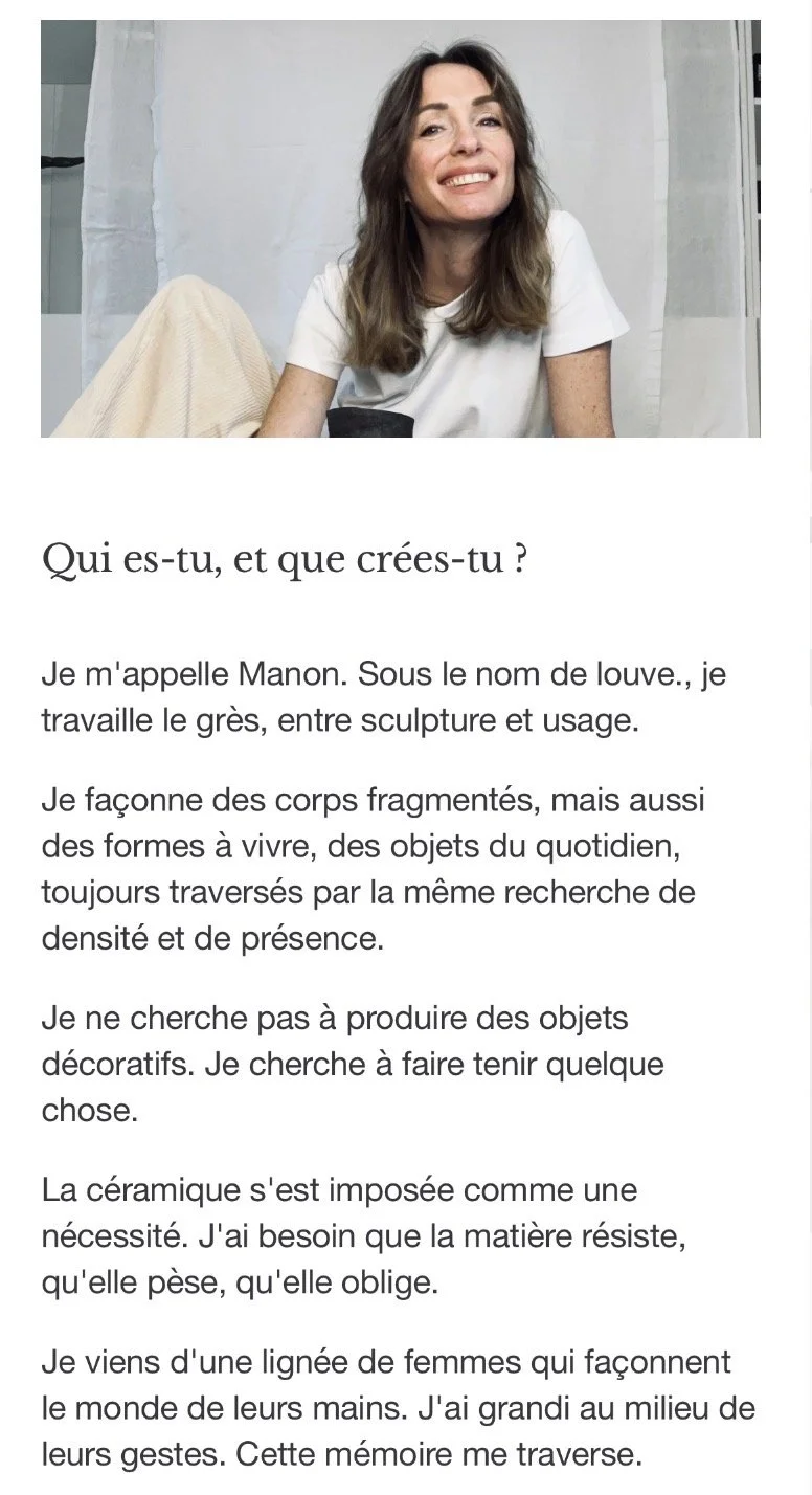 Un travail en grès, à la frontière entre sculpture et usage. Le corps, la matière, la trace du geste.